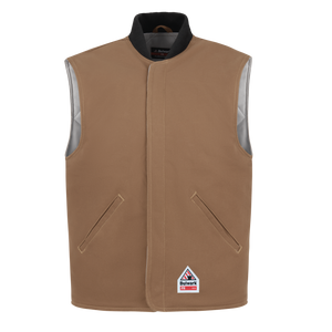 This heavyweight CAT 4 vest jacket liner snaps into the Brown Duck Lineman's Coat JLC6BD (sold separately), for an added layer of warmth and heavy-duty FR protection, only when you need it. Featuring concealed snap-front closure, rib knit collar, two large inset slash-welted pockets, one inside chest pocket, with DWR - Durable Water Repellent finish.