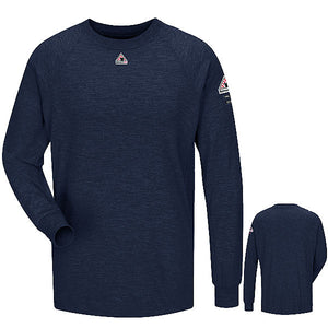 Features: Dyed-to-match rib knit crew neck collar and cuffs. Tagless. Full side seam gusset. Raglan sleeve. Fabric is moisture wicking and breathable. Compliant to NFPA 2112.
