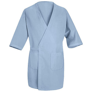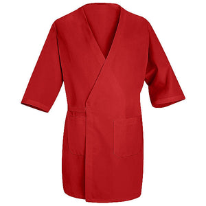 A sleek, clean look tackles messy jobs with three-quarter sleeves and a reversible self-tie closure. With your choice of pocket or no pocket styling and five bold colors that stay true through industrial laundering, this wrap is a clear-cut favorite.