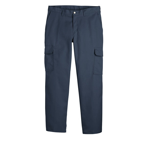 Dickies' Industrial Relaxed Fit Straight Leg Cargo Pants are a premium work pant offering uniform comfort, while standing up to industrial laundering. Roomy cargo pockets with hidden snaps hold plenty. The metal tack button waist closure is a durable design that won't wear out. Double thick front pockets, crotch gusset, metal tack button and wider belt loops add durability. Wrinkle-free polyester/cotton twill with StayDark® resists fading in even dark colors.